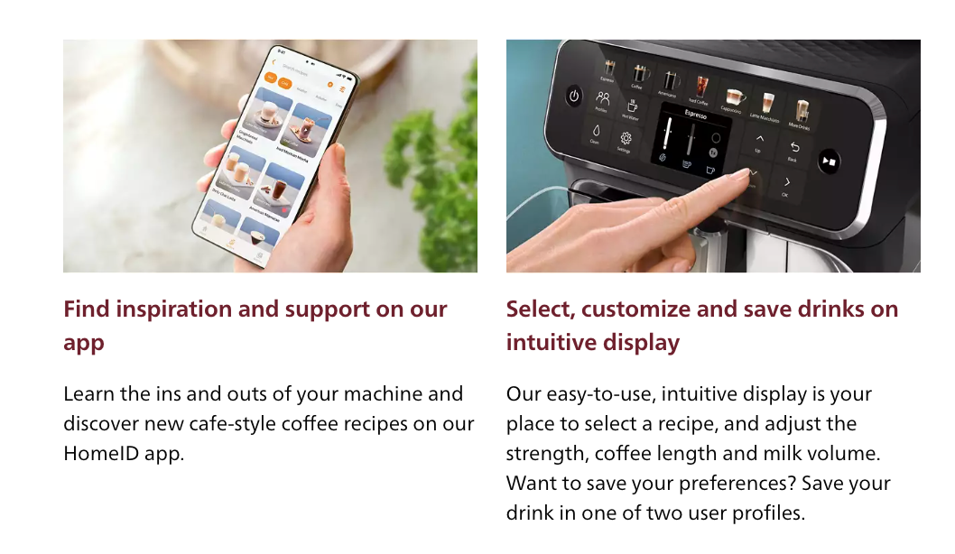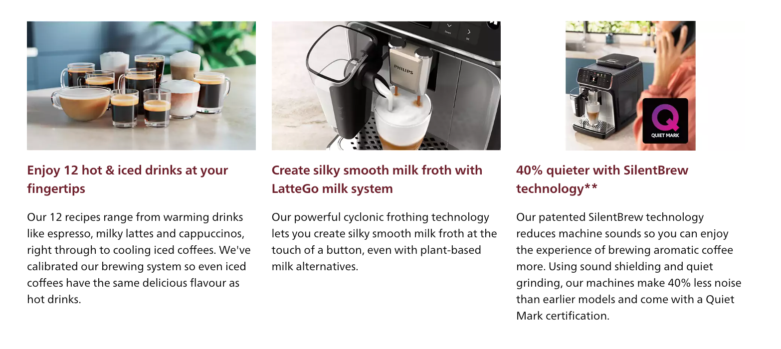 Préparez facilement des variétés de café aromatiques comme l'espresso, le café, le cappuccino et le latte macchiato en appuyant simplement sur un bouton. LatteGo surpasse les variétés de lait avec une mousse soyeuse et douce, est facile à installer et peut être nettoyé en aussi peu que 15 secondes.