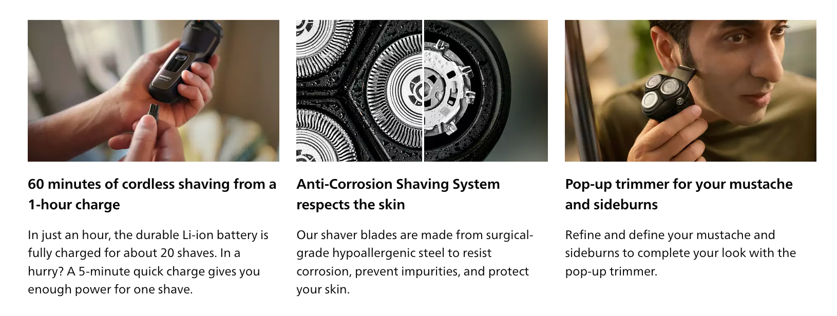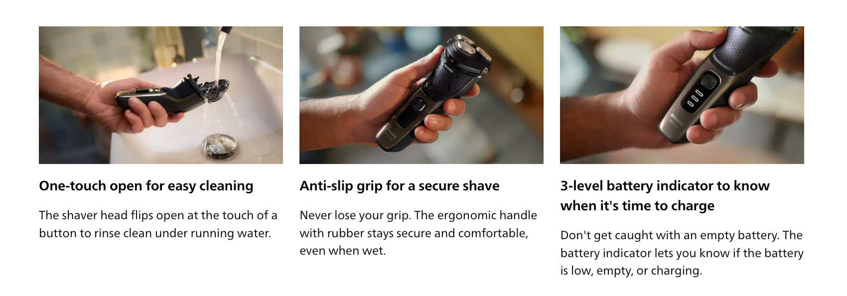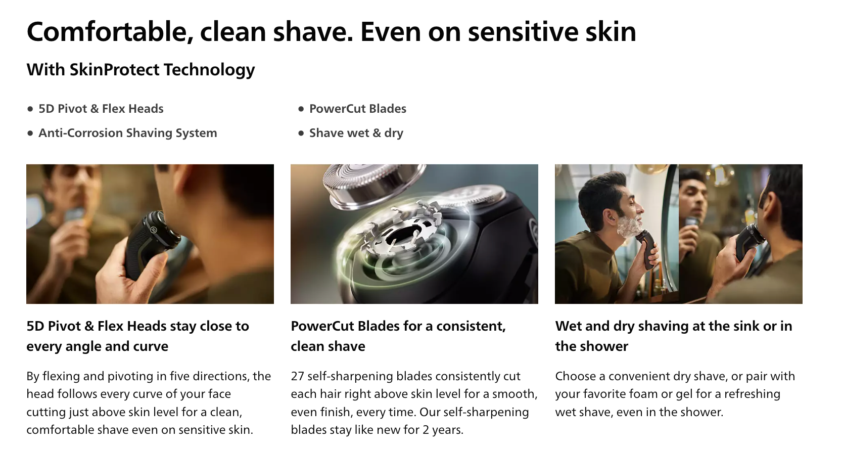 Le rasoir électrique Philips Shaver série 3000 Wet & Dry vous offre un rasage confortable et propre, même sur les peaux sensibles. Les têtes pivotantes et flexibles 5D, les 27 lames PowerCut auto-affûtées et l'utilisation humide et sèche garantissent des résultats excellents et fiables à chaque fois.