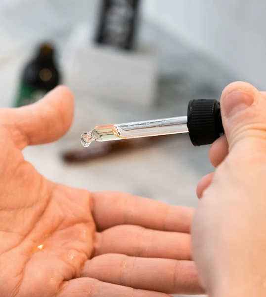 - Ajoutez quelques gouttes dans la paume de vos mains et frottez les poils de la barbe en commençant par les racines jusqu'à la pointe de la barbe.