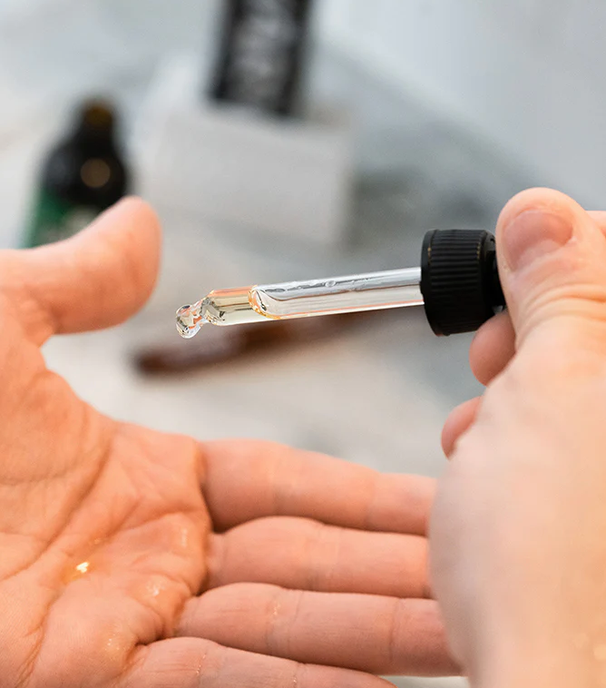 Ajoutez quelques gouttes dans la paume de vos mains et frottez les poils de la barbe en commençant par les racines jusqu'à la pointe de la barbe.
