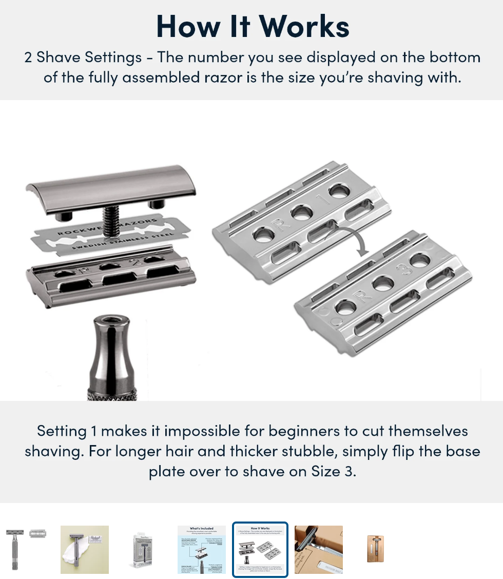 - PLUS DE NICK OU COUPURES - Le Rockwell 2C est doté des réglages R1 et R3 brevetés de Rockwell sur une plaque rabattable, afin que tout le monde puisse obtenir un excellent rasage sans presque AUCUN RISQUE DE NICK OU COUPE.