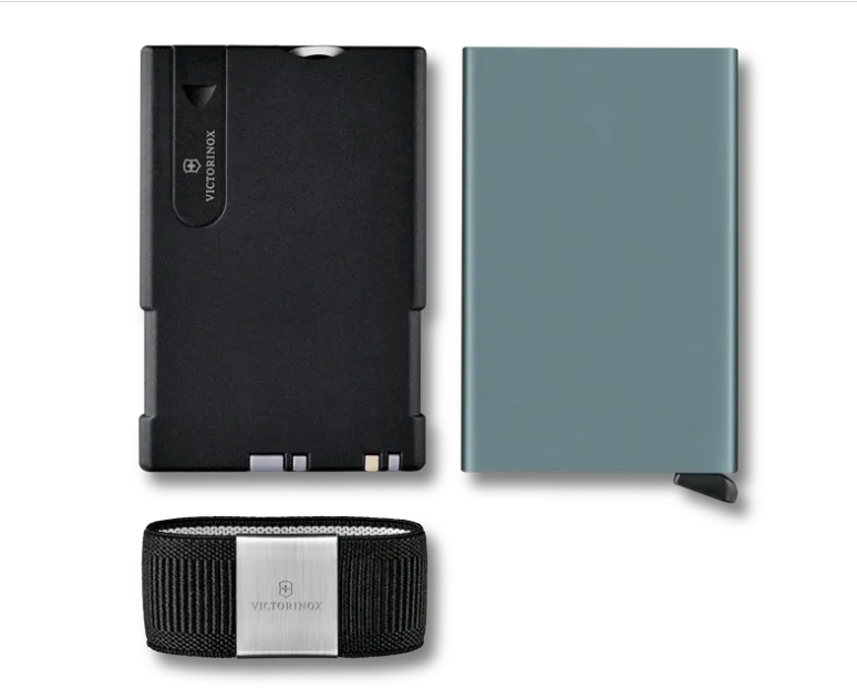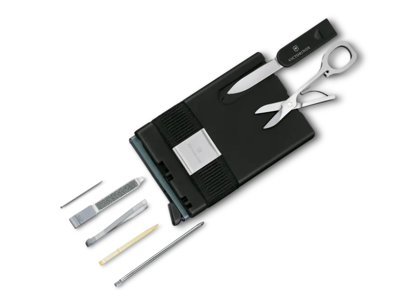 Cardprotector / Moneyband / Lame, petite / Ciseaux / Lime à ongles | Tournevis 2,5 mm / Épingle / Pince à épiler / Cure-dent / Stylo à bille pressurisé / Lime à ongles