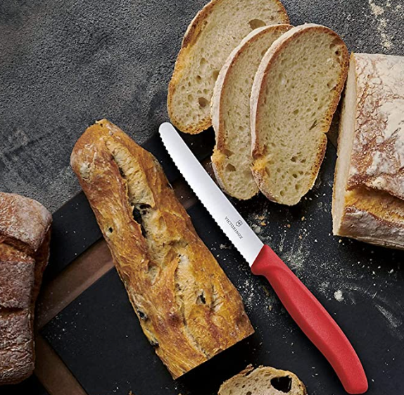 Victorinox Swiss Classic Couteau à tomates et de table idéal pour couper les fruits et légumes avec lame dentelée à peau douce en rouge